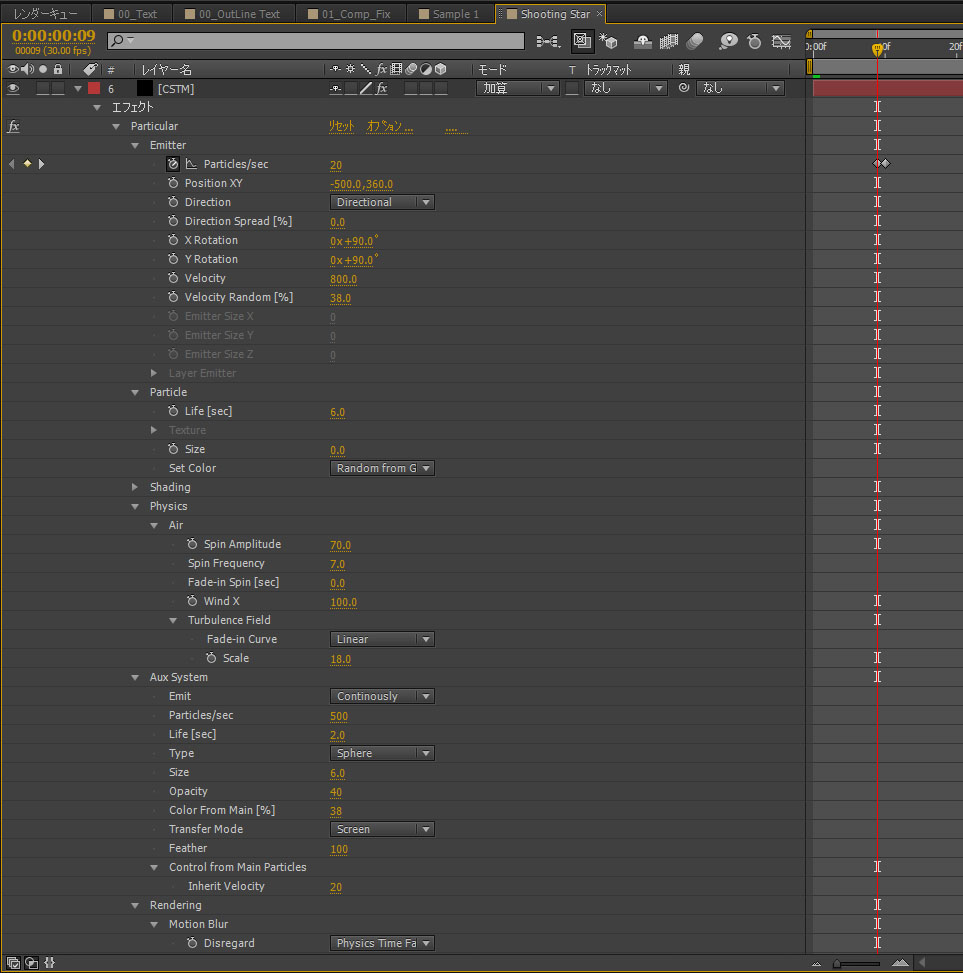Particles/secやLifeを大きくしすぎるとレンダリングに時間がかかります(かなり・ω・;